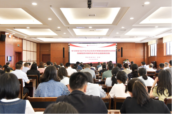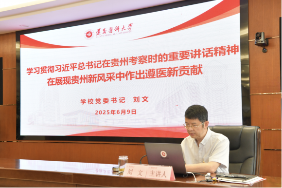 为深入学习贯彻习近平总书记在贵州考察时的重要讲话精神,6月9日,beat365官网党委书记刘文以“学习贯彻习近平总书记在贵州考察时的重要讲话精神,在展现贵州新风采中作出遵医新贡献”为题,结合学校发展规划进行专题宣讲。学校各部门、各学院副处级以上领导干部和部分科级干部参加。