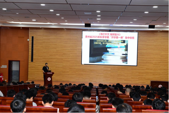 8月31日晚8时,由中共贵州省委教育工委、贵州省教育厅精心打造的贵州省2025年秋季学期“开学第一课”——《书灯不灭烛照复兴》在全网同步播出。学校2万余名师生通过多种形式收看学习,共同回顾抗战时期高校西迁办学的艰辛历程,感悟教育救国、读书报国的精神传承。