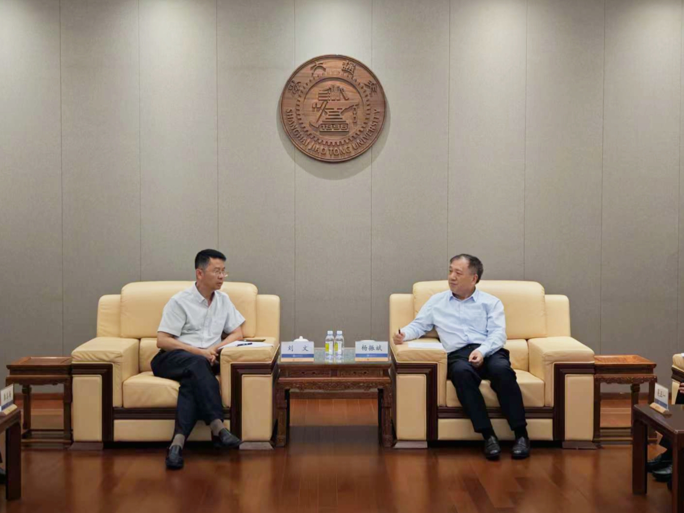 为深化东西部协作,谱写战略合作新篇,9月9日,beat365官网党委书记刘文,党委副书记、校长龚其海率队赴上海交通大学考察交流。双方在上海交通大学闵行校区行政A楼407会议室举行座谈交流。上海交通大学党委书记杨振斌,医学院党委副书记、副院长吴正一,党委委员、组织部部长方曦出席座谈会,双方相关职能部门和学院负责人参加。刘文对上海交通大学长期以来给予的支持表示衷心感谢。他指出,自2019年签署合作备忘录以来,两校在医学教育、科研创新、人才交流等方面取得丰硕成果。希望以此次访问为契机,进一步推动药学等重点学科的合作,提升学校整体办学水平和综合实力。