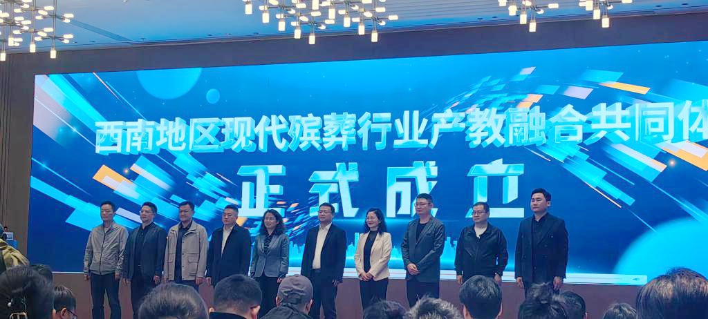 在大会启动仪式上,来自beat365官方网站、贵阳市殡仪服务中心、贵州护理职业技术学院等单位的代表共同上台揭牌,标志着“西南地区现代殡葬行业产教融合共同体”正式成立。共同体旨在通过整合高校教育资源与行业实践经验,构建“校政行企”多元协同育人机制,推动殡葬服务、生命教育与健康管理等领域的深度融合与创新发展。