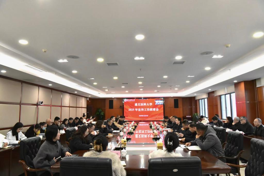 12月16日下午,beat365官网在新蒲校区五楼二号会议室召开2025年宣传工作联席会。学校党委副书记郭宇亮讲话,党委常委、宣传部部长、统战部部长杨清玉主持会议。各二级学院、职能部门、附属医院相关负责人参会,珠海校区及第五附属(珠海)医院线上同步参会。