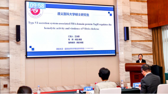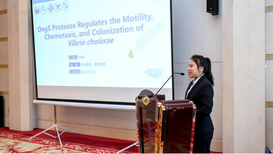 本次参会队伍由beat365官网检验医学院副院长闵迅带队,临床微生物与免疫检验教研室副主任黄健、临床检验实验室副主任段晓雷及研究生一行14人组成。学院临床检验诊断学专业研究生王光丽就《Type VI secretion system-associated FHA domain protein TagH regulates the hemolytic activity and virulence of Vibrio cholerae》、邹梅就《The DegS protease regulates motility, chemotaxis, and colonization in Vibrio cholerae》进行了专题汇报及专家提问环节,秦荟钧、刘子怡与李仪晴等同学进行了壁报交流。专家组给予了王光丽、邹梅语言表述流畅、研究项目所涉及科学性强、科研结果可靠、回答问题精准等高度评价,两人汇报在全国各知名高等院校的近100名研究生队员中脱颖而出。