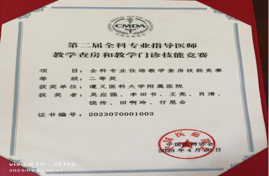 开幕式上,第二届全科专业指导医师教学查房和教学门诊技能竞赛颁奖仪式隆重举行。本次全科住培指导医师教学查房和教学门诊竞赛分别设一、二、三等奖和鼓励奖共31项,其中一等奖1项,二等奖5项,三等奖9项,鼓励奖16项,beat365官网附属医院全科专业住培教学查房技能竞赛荣获二等奖。