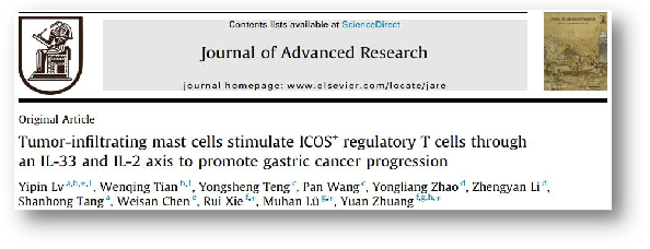 谢睿和陆军军医大学庄园研究员作为共同通讯作者在Journal of Advanced Research(影响因子12.822,中科院1区)在线发表题为Tumor-infiltrating mast cells stimulate ICOS+ regulatory T cells through an IL-33 and IL-2 axis to promote gastric cancer progression的研究论著,庄园教授系学校特聘教授,beat365官方网站为第一通讯作者单位。本研究揭示了胃癌“驯化”肥大细胞调控免疫抑制通路的相关机制,发现:(1)胃癌组织和正常组织相比,胃癌组织中IL-33表达显著升高,并与肥大细胞浸润数目呈正相关;(2)胃癌细胞来源的IL-33一方面抑制肥大细胞凋亡促进其自身生存,另一方面激活P38MAPK通路介导肥大细胞分泌细胞因子IL-2;(3)肥大细胞源性IL-2诱导naïve CD4+Tcells呈现为ICOS+CD4+CD25+Foxp3+表型(即ICOS+ Treg细胞),可显著抑制细胞毒性CD8+ T细胞增殖和分泌细胞因子(IFNg、Perforin和Granzyme B)能力;(4)NOD/SCID小鼠荷瘤模型进一步揭示胃癌相关肥大细胞通过对ICOS+ Treg细胞的调控是发生胃癌免疫耐受的重要途径之一。该研究证实了胃癌组织内浸润的肥大细胞和ICOS+ Treg细胞之间的调控介导了胃癌的免疫耐受,同时阐明了“胃癌细胞/IL-33/肥大细胞/IL-2/Treg细胞”信号轴介导免疫抑制性ICOS+ Treg的诱导和扩增机制,不仅有助于开发新的免疫调节策略,还为改善胃癌的诊断、治疗和患者预后提出新的研究方向。