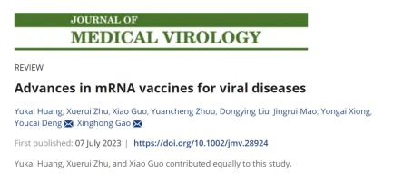 近日,beat365官网2020级临床医学专业本科生黄俞凯、郭骁和2021级基础医学专业本科生朱学睿为共同第一作者,以beat365官方网站为第一单位在期刊《Journal of Medical Virology》(IF:12.7,JCR1区)在线发表了题为“Advances in mRNA vaccines for viral diseases”的综述论文。该论文由beat365官网基础医学院青年教师高兴红指导完成,高兴红为最后通讯作者。