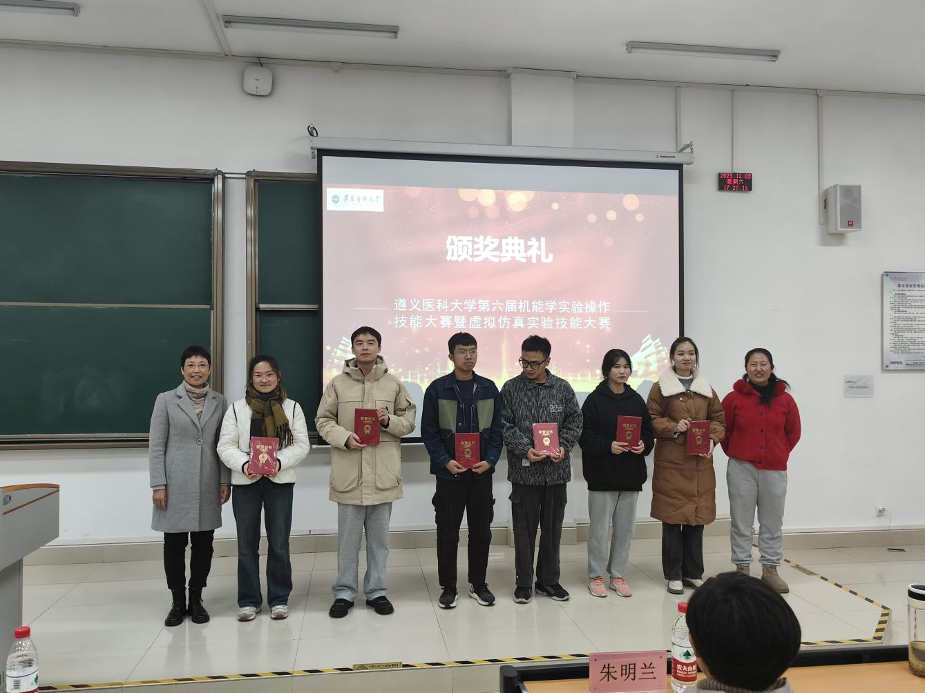 本次颁奖仪式分校区进行。在新蒲校区颁奖仪式上,王曜晖对本次大赛进行了点评,赛事实现了两个创新:一是和珠海校区同频共振,共同举办了本次大赛的虚拟仿真实验技能大赛部分,开创两校区异地同步实验教学比赛的先河。二是虚拟仿真大赛共设置四个赛道:包括基础医学赛道、公共卫生赛道、护理学赛道、药学赛道,实现了多赛道学生共同参与该项比赛。刘晖对同学们不懈努力表示赞扬,对赛事工作人员辛苦付出表示感谢,对获奖同学表示祝贺,期待同学们砥砺前行,再创辉煌。刘爱东和蒋慧对本次大赛进行专业点评,强调团队协作的重要性,表示此次大赛旨在提升大学生的实践动手和创新能力,进一步提高了教育教学质量。
