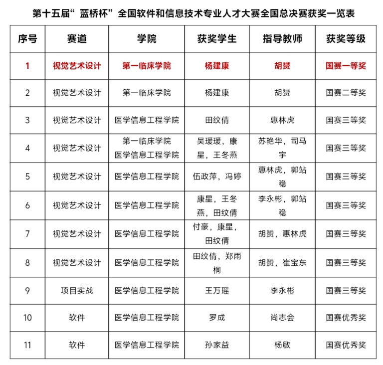 未来,学校将继续秉承“明德笃学、求是致用”的校训,持续深化创新创业教育改革,提升学科竞赛的组织和参赛水平,努力实现创新创业教育与思想政治教育、专业教育的深度融合,全面推进课程体系、教学方法、师资队伍和实践教学基地建设等多方面改革,为培养更多具有创新精神和实践能力的优秀医学人才贡献力量。(审核:一审张继东,二审上官腾飞,三审杨清玉、李均;图文:李永彬、司马宇、胡赟)