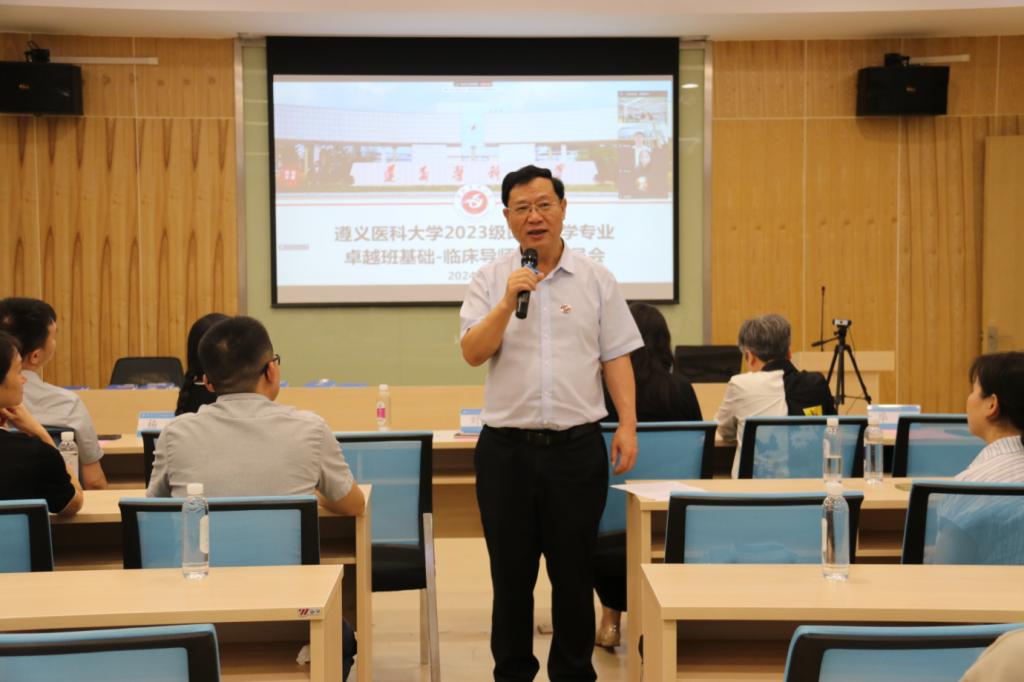 会议伊始,刘建国向第一届口腔卓越班全体学生表示祝贺,围绕遵医口腔的基本情况和历史沿革展开介绍。他指出,导师双选是发挥教学育人的重要举措,是打造高水平医学人才队伍的有力支撑,希望各位同学潜心求学、增长知识、练就本领、学有所成,在未来的学习生活中勇敢逐梦,焕发新时代遵医学子的青春光彩。