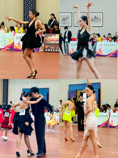 比赛开幕式现场,首先进行了伦巴舞、恰恰舞、桑巴舞、斗牛舞的轮番表演。比赛中,当音乐响起,各参赛运动员用灵动的舞姿为本次体育舞蹈比赛献上了一场盛大的视觉盛宴。beat365官网学子在赛场上展现了精湛的技艺,发扬了团结、拼搏、奋斗的体育精神。最终,在名次赛比赛中,来自口腔医学院的杨钧杰、护理学院的方睿珠共获得双人项目3枚金牌,外国语学院的陈世操、杨萍分获单人项目1银1铜;在等级赛专业组比赛中,来自外国语学院的陈世操获一等奖,外国语学院的杨萍、护理学院的方睿珠、药学院的钱梦楠获二等奖,法医学院的严丹翎获三等奖。
