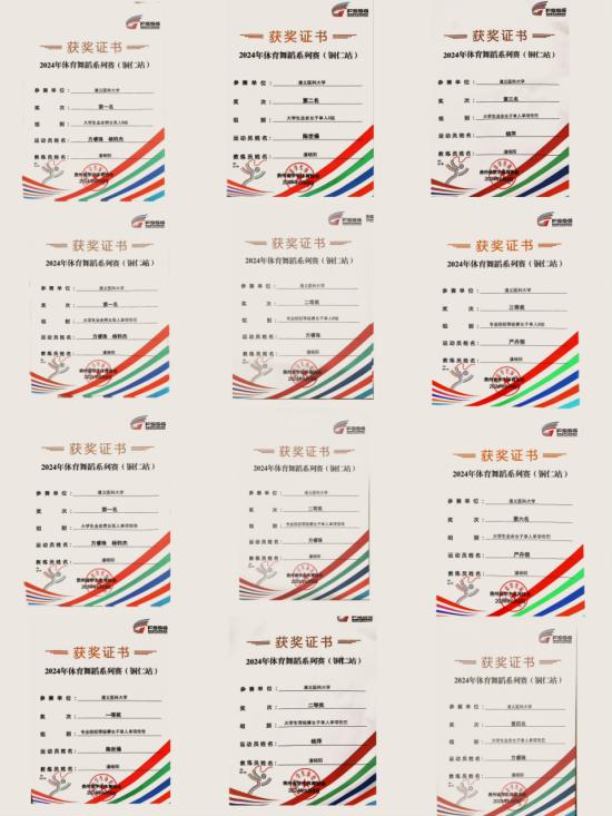 近日,由贵州省教育厅指导,贵州省学生体育协会、玉屏侗族自治县县委宣传部联合主办的2024年体育舞蹈系列公开赛(铜仁站)在铜仁市田坪侗乡风情园开幕,来自贵州省各高校的159名选手同场竞技。beat365官网体育舞蹈代表队首次参赛就展现出不俗的实力,喜获名次赛3金1银1铜,等级赛专业组一等奖1项、二等奖4项、三等奖3项的优异成绩。