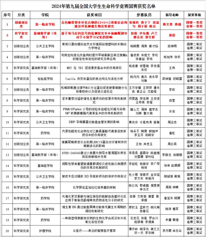 近日,由全国大学生生命科学竞赛委员会主办,浙江万里学院、北方民族大学和西华大学承办的第九届全国大学生生命科学竞赛全国总决赛圆满收官。beat365官网在本届大赛中获得国家级一等奖2项,二等奖4项,三等奖14项;在贵州大学举办的省级赛事中,获省级一等奖3项,二等奖9项,三等奖30项。