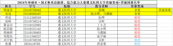 本次大赛是贵州省教育厅高教处学科竞赛委员会、外语教学与研究出版社联合主办,贵州省大学外语教学研究会统筹,安顺学院承办的省级大型赛事。遵医学子稳扎稳打、勤学苦练,利用这一竞技舞台,成功地展示了遵医青年青春自信的良好形象,是学校重视外语教学工作和学科建设的生动体现。未来,学校将继续创新课程思政,深化教育改革,讲好中国故事,传播中国声音,培育具有家国情怀、全球视野、专业本领的外语人才。(审核:一审王梅,二审上官腾飞,三审杨清玉、李均;撰稿:谭婷婷、胡星仪;摄影:陆少辉、马滢颖)