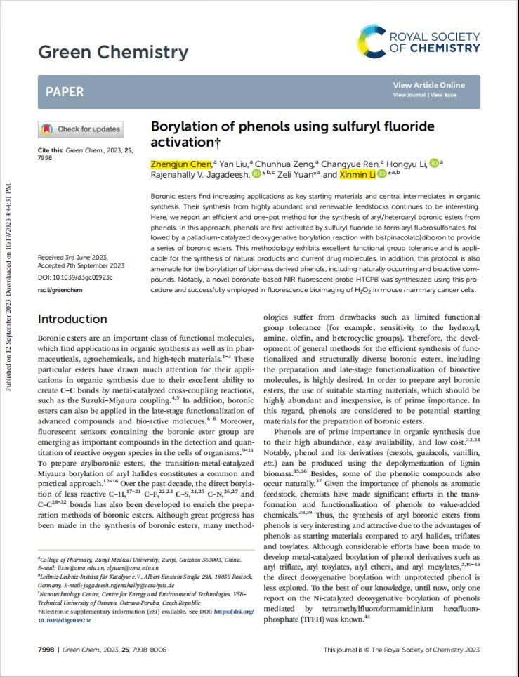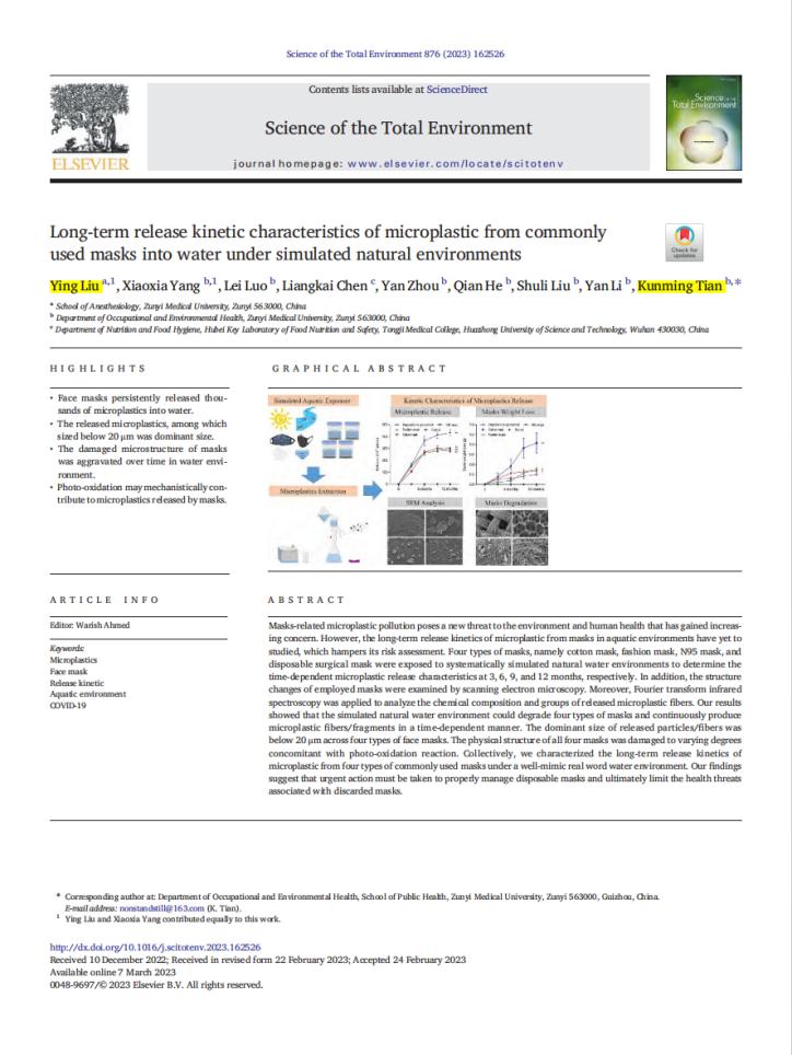 为进一步激发学生的创新智慧和创造活力,学校积极引导学生凝练大创项目成果。2017级药学专业本科生陈正军在期刊《Green Chemistry》(IF=9.3,中科院一区)发表题为“Borylation of phenols using sulfuryl fluoride activation”的研究论文;2019级预防医学本科生刘颖在期刊《Science of The Total Environment》(IF=8.2,中科院一区)发表题为“Long-term release kinetic characteristics of microplastic from commonly used masks into water under simulated natural environments”的研究论文,展现了学校创新创业教育改革新风貌。