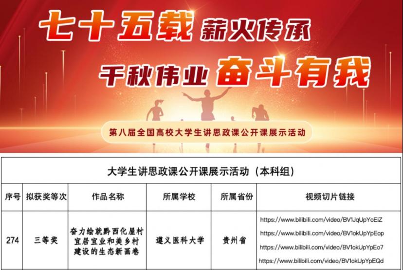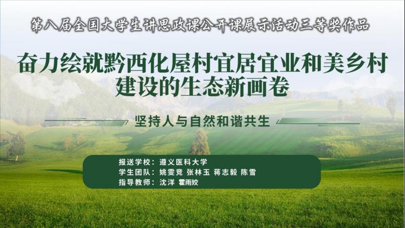 近日,教育部公布“七十五载薪火传承,千秋伟业奋斗有我——第八届全国高校大学生讲思政课公开课展示活动”评审结果,学校党委宣传部报送的作品《奋力绘就黔西化屋村宜居宜业和美乡村建设的生态新画卷》荣获国赛三等奖,实现beat365官网在该项比赛国家级奖项上的新突破。该作品由马克思主义学院副院长沈洋和贵州省团校讲师霍雨姣联合指导,骏马宣讲队走进化屋村以生动的思政课描摹多彩贵州生态新画卷。