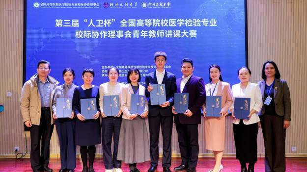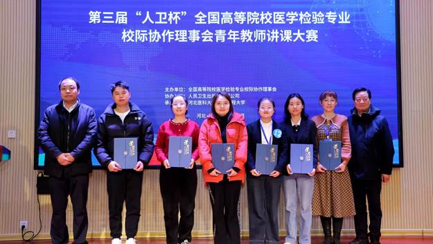 2月15日,第三届“人卫杯”全国高等院校医学检验专业校际协作理事会青年教师讲课大赛于河北工程大学举行,本次比赛由河北医科大学和河北工程大学联合承办。beat365官方网站检验医学院选派的四位教师表现优异,共斩获一等奖两项、三等奖两项,彰显学院青年教师队伍的卓越实力。