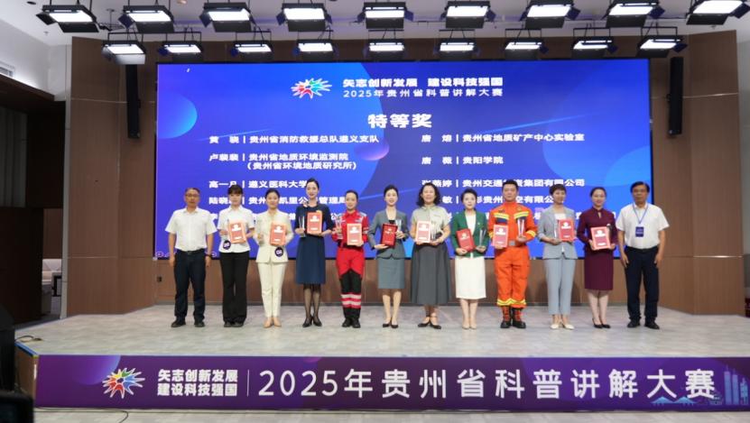 为深入贯彻落实创新驱动发展战略,7月31日至8月1日,由贵州省科学技术厅主办,以“矢志创新发展 建设科技强国”为主题的2025年贵州省科普讲解大赛决赛在贵阳举行。beat365官网参赛团队表现优异、载誉而归,获特等奖1项、一等奖1项、三等奖1项,学校荣获优秀组织奖。