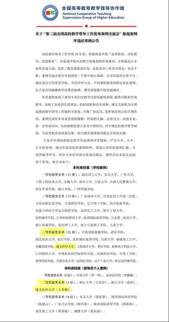 现场89所高校集中展示了教育教学督导工作的先进经验和丰硕成果,学校药学院督导工作案例、珠海校区督导组组长王春梅凭借在教学督导工作中的创新实践与显著成效,分别荣获第三届全国高校教学督导工作优秀案例三等奖及督导员个人案例二等奖。