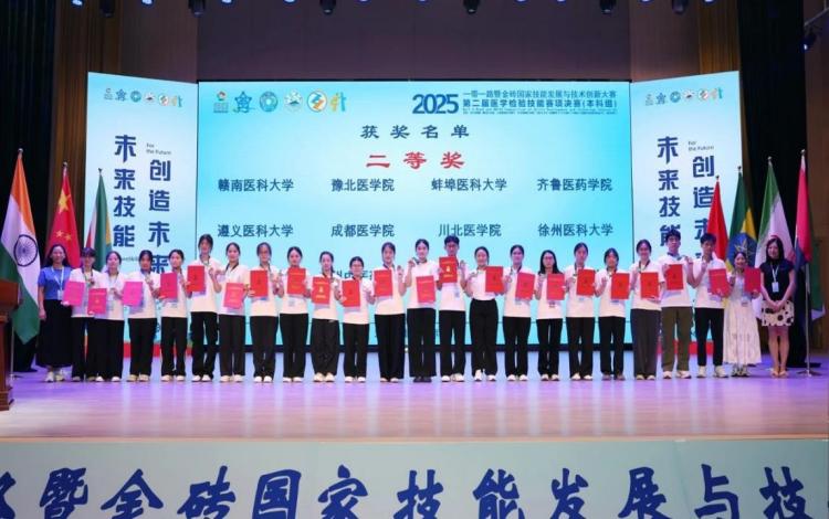 8月8日至10日,“一带一路”暨金砖国家技能发展与技术创新大赛——第二届医学检验技术赛项(本科学生组)暨首届医学检验技术创新赛项决赛(本科教师组)在九江学院隆重举行。beat365官网检验医学院参赛团队凭借扎实的专业功底和出色的临场表现,在激烈角逐中脱颖而出,斩获全国决赛二等奖(银牌),指导教师荣获“优秀指导教师”称号,学校同时被授予“优秀组织奖”,充分展现了beat365官网在医学检验领域的教学成果与人才培养能力。
