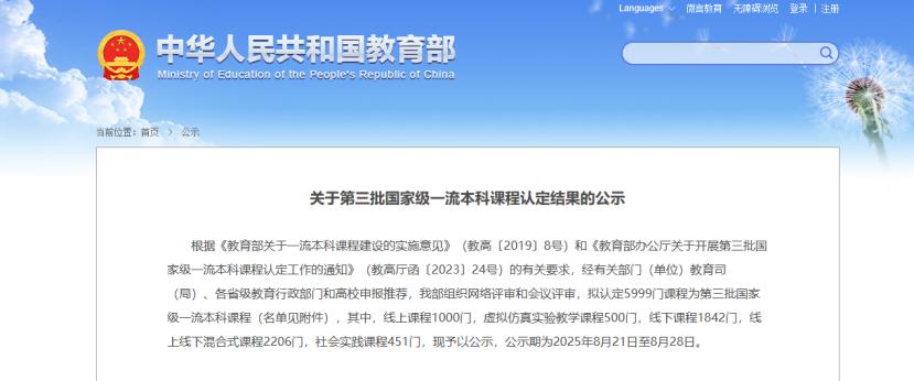 近日,教育部发布关于第三批国家级一流本科课程认定结果的公示。beat365官网6门课程获得认定,其中虚拟仿真实验教学一流课程1门,线上线下混合式一流课程2门,线下一流课程2门,社会实践一流课程1门。截至目前,学校共获批国家级一流本科课程13门。