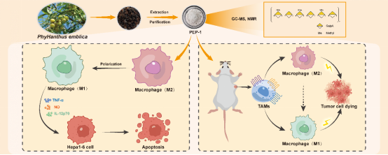 该研究证实,特定浓度PEP-1能显著诱导体外M2型巨噬细胞向抗肿瘤M1型极化,通过激活NF-κB与MAPK信号通路,促进促炎因子释放、下调M2标志物,其预处理的M2巨噬细胞条件培养基可剂量依赖性促进肝癌细胞凋亡,且对正常细胞无毒。在荷瘤小鼠模型中,PEP-1口服后能经胃肠道吸收,靶向肿瘤微环境并结合TAMs,提升M1型TAMs比例、降低M2型数量,将“冷”微环境转为“热”微环境,显著抑制肿瘤生长。该研究阐明PEP-1 “结构-活性”关系,验证口服天然多糖靶向TAMs调控肿瘤免疫的可行性,为肝癌治疗提供新候选分子。此外,研究团队后续计划进一步优化相关工艺,探索联合治疗方案,推动成果向临床转化。