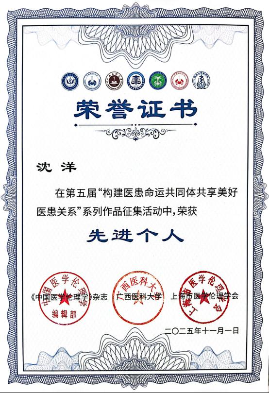 据悉,通过前期优秀作品征集,本次学术研讨会共收到来自全国一千余篇作品。同时,为表彰在构建医患命运共同体过程中发挥先锋模范作用的集体和个人,大会评审委员会还评选出“先进集体”(10家最佳传播奖,23家优秀组织奖,4家特别贡献奖)和“先进个人”。beat365官网马克思主义学院荣获“先进集体(最佳传播奖)”,学院副院长沈洋获评“先进个人”,两篇学术论文获评优秀作品“三等奖”。