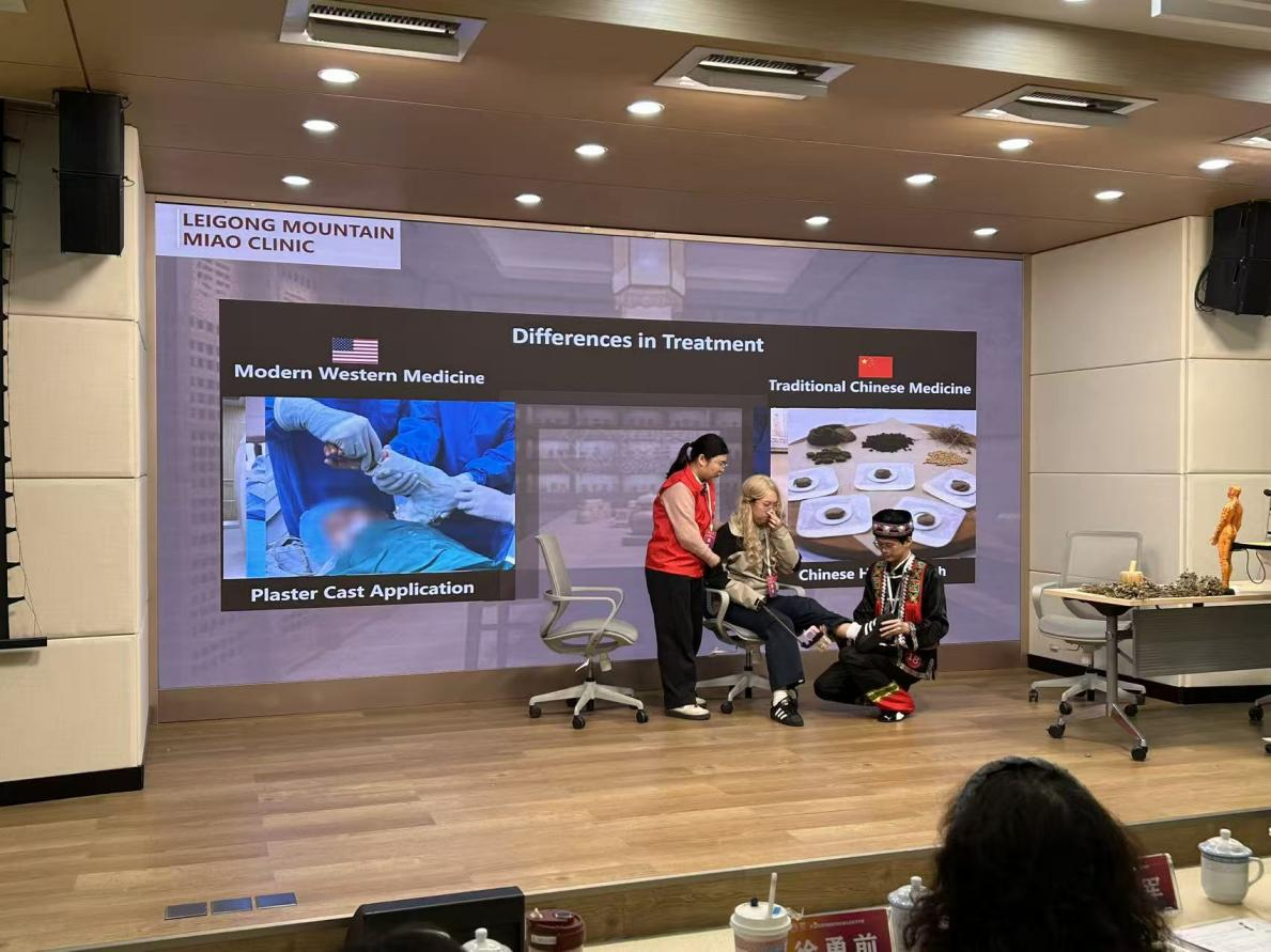 “Miao-tivators”代表队由来自不同专业的优秀学生胡湘婷(23级临床医学)、陈浩聪(23级临床医学) 和郑睿(23级英语专业)组成。在比赛中,三位同学巧妙地将医学专业知识与跨文化交际理论相结合,他们流利的英语表达、严谨的逻辑论证和自信沉稳的现场风采赢得了评委们的一致认可。