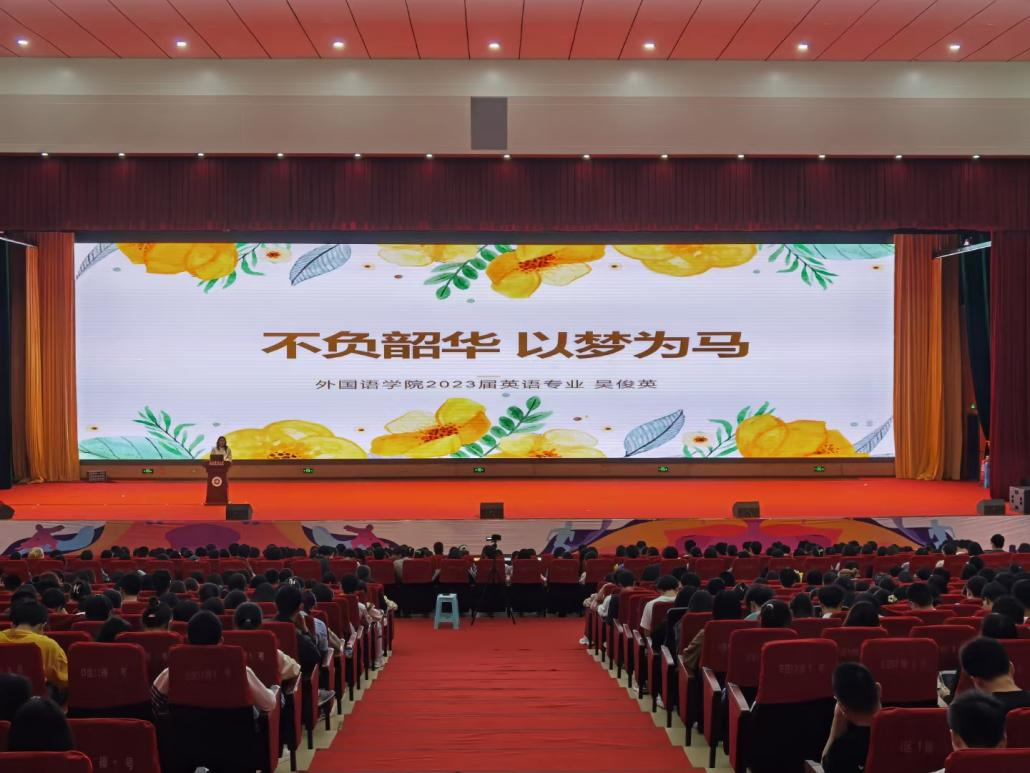 为深入学习贯彻党的二十大精神,落实习近平总书记关于青年工作的重要论述精神,充分发挥beat365官网优秀大学生的典型示范与朋辈引领作用,充分展示毕业生积极进取的精神风貌,促进优良学风、校风建设,5月24日晚,由学校学生工作部(处)主办,大学生自律委员会学风督查部协办的“我把青春讲给你听”——beat365官方网站2023届优秀毕业生先进事迹报告会在学校会堂圆满完成。学校学生工作部部长、学生工作处处长杨艳为报告会致辞,各学院分管学生工作书记(副书记)及辅导员出席报告会,来自各学院的2000余名在校生代表参加了本次报告会。