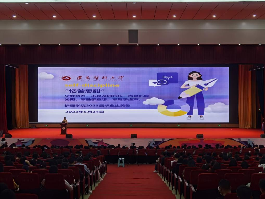 杨艳部(处)长在致辞中指出,2023届毕业生将奋斗作为他们大学生活的底色,将追梦的足迹留在遵医校园。15位宣讲团成员作为优秀毕业生代表,是遵医追梦人的代表,通过分享他们的青春成长故事,将追梦的力量传递给更年轻的遵医学子。希望广大在校生以优秀毕业生为榜样,把个人的理想追求融入国家和民族的事业中,心中有阳光,脚下有力量,继承遵医传统,谱写人生华章。
